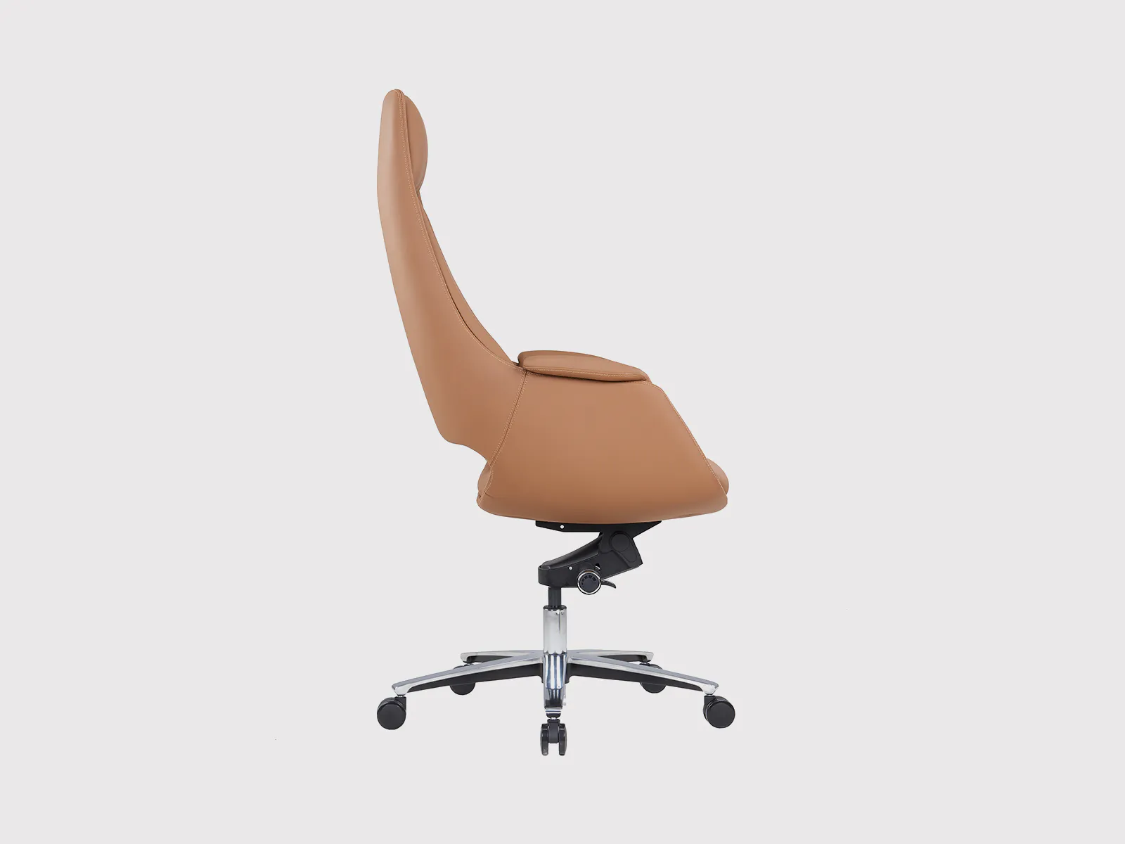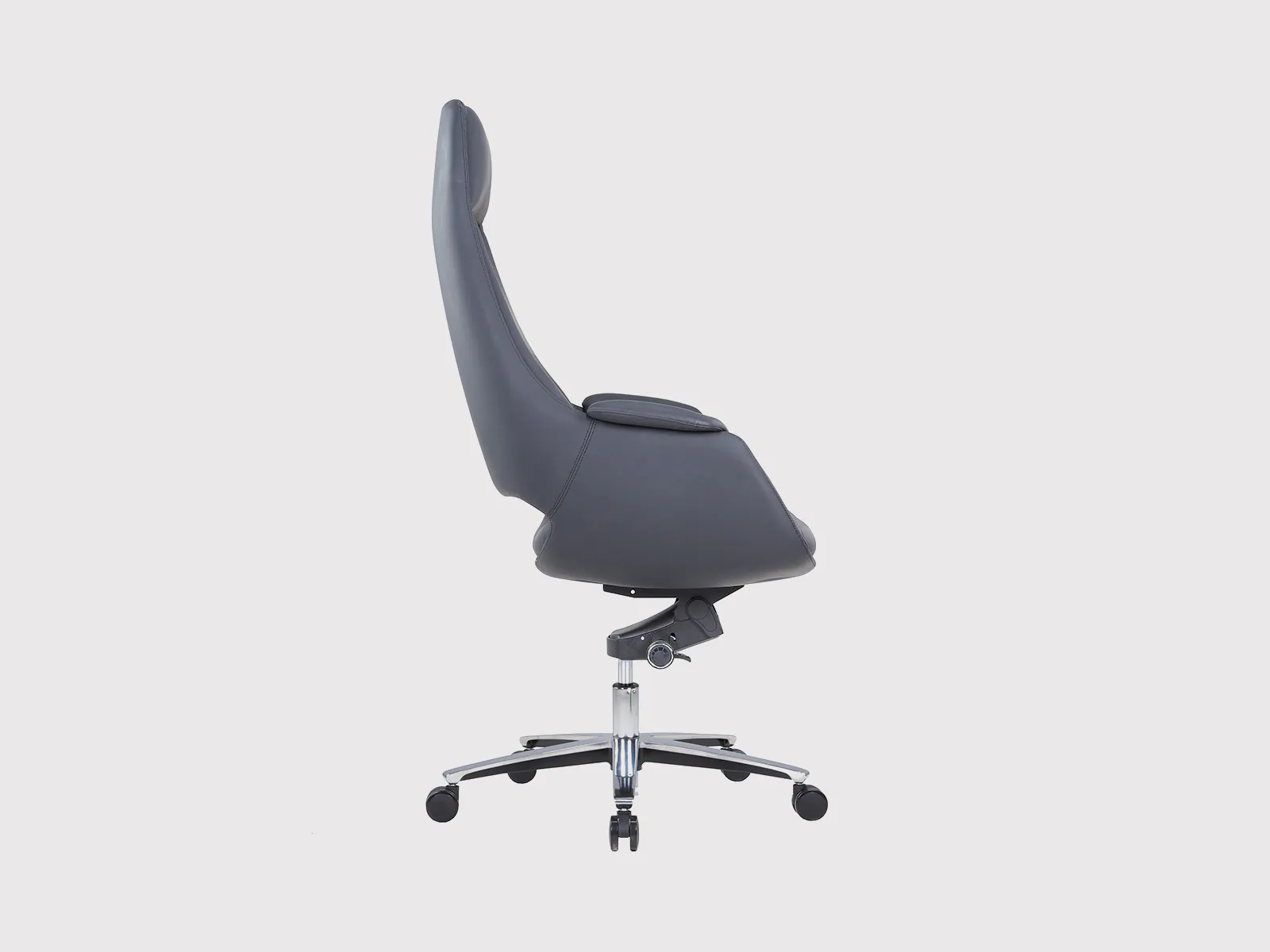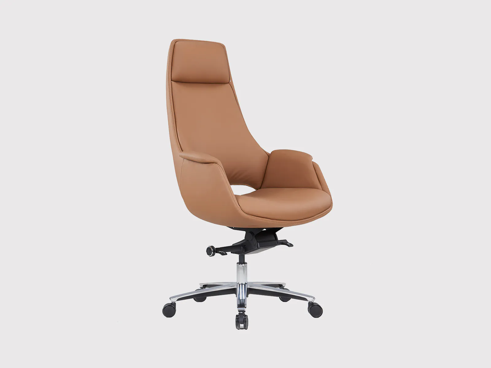 Its seat is constructed with an 18mm double board and layered with molded foam, delivering superior comfort and structure. The contoured headrest, also crafted from molded foam, provides essential neck support during long hours of work or meetings.