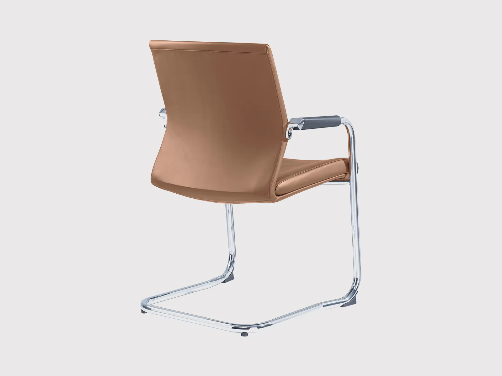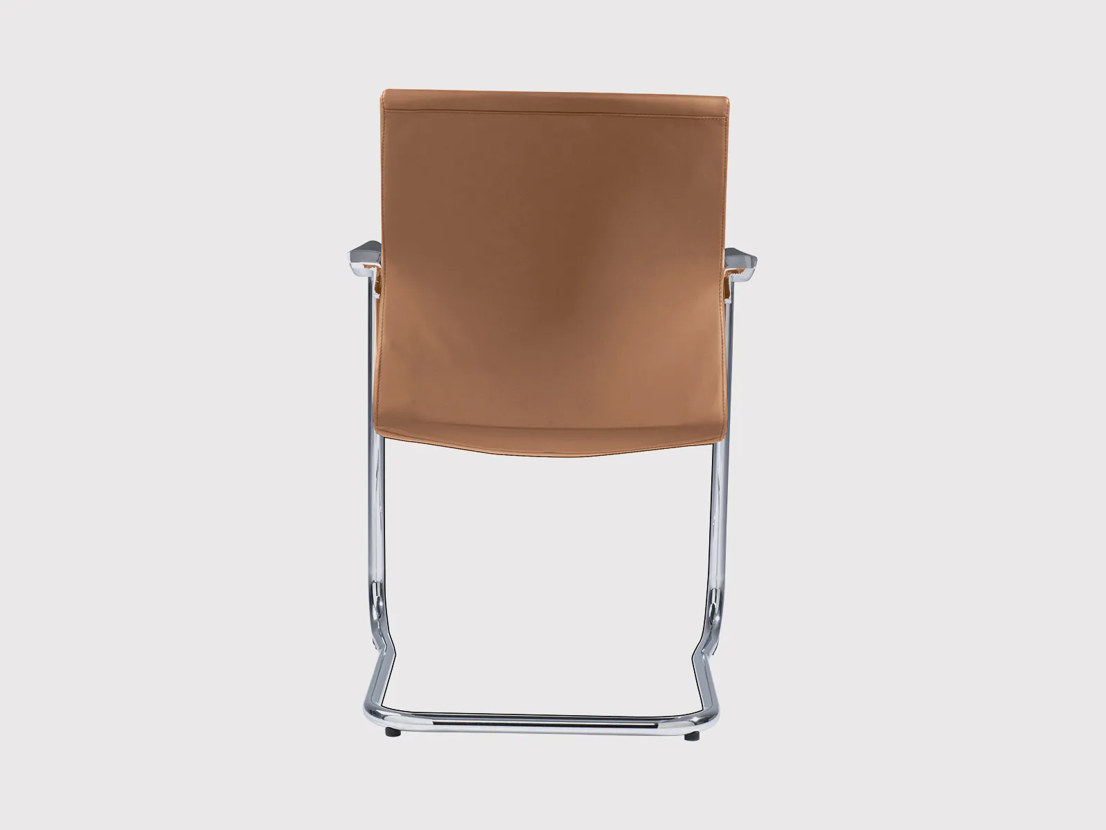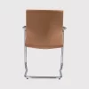 Its backrest and seat are contoured for ergonomic support, while the integrated black armrests deliver steady comfort and a clean, minimalist appearance. The chair is supported by a sturdy chrome-plated sled base made from 25 mm steel tubing with 1.8 mm thickness, ensuring long-lasting performance and a polished look.