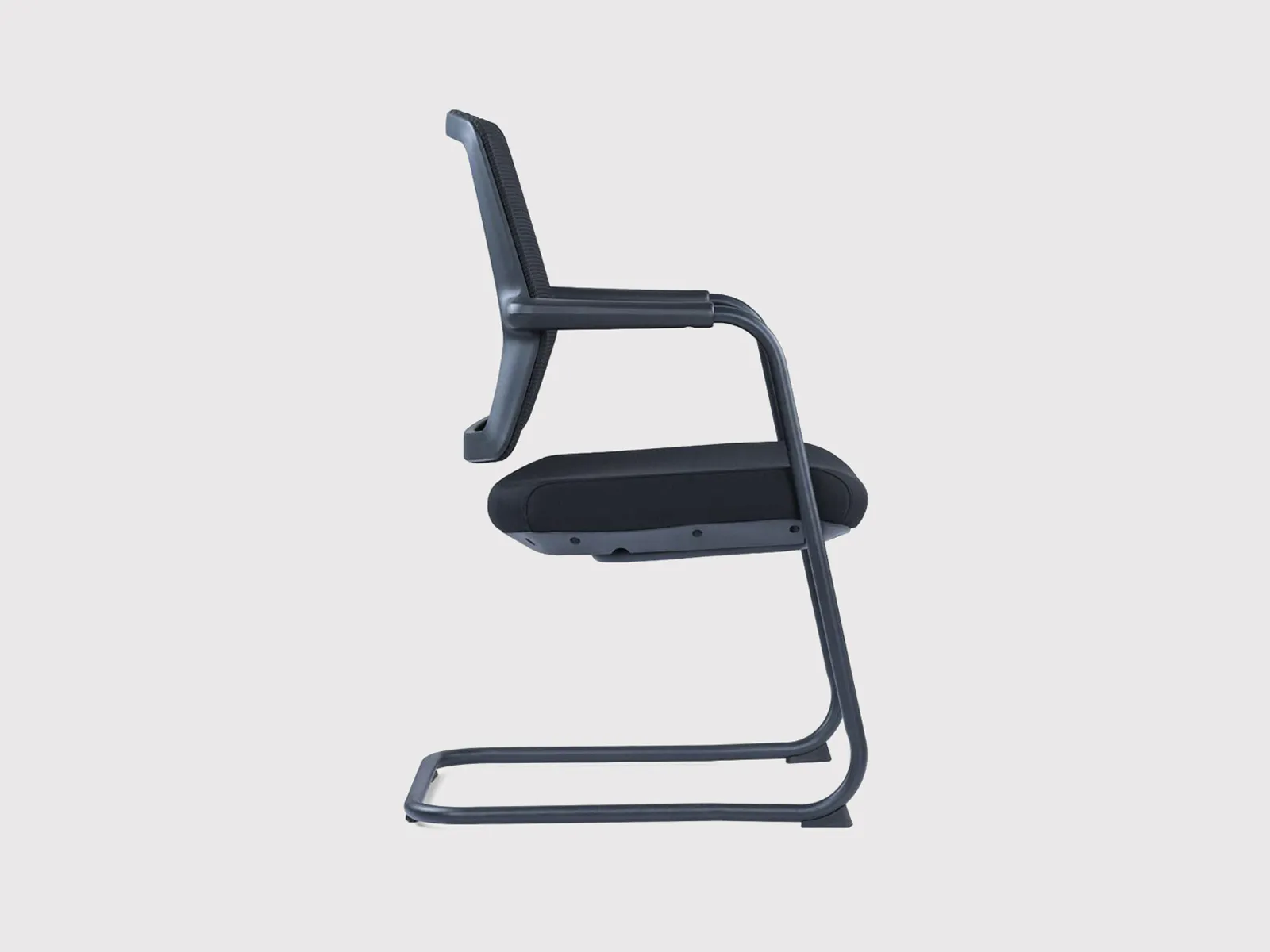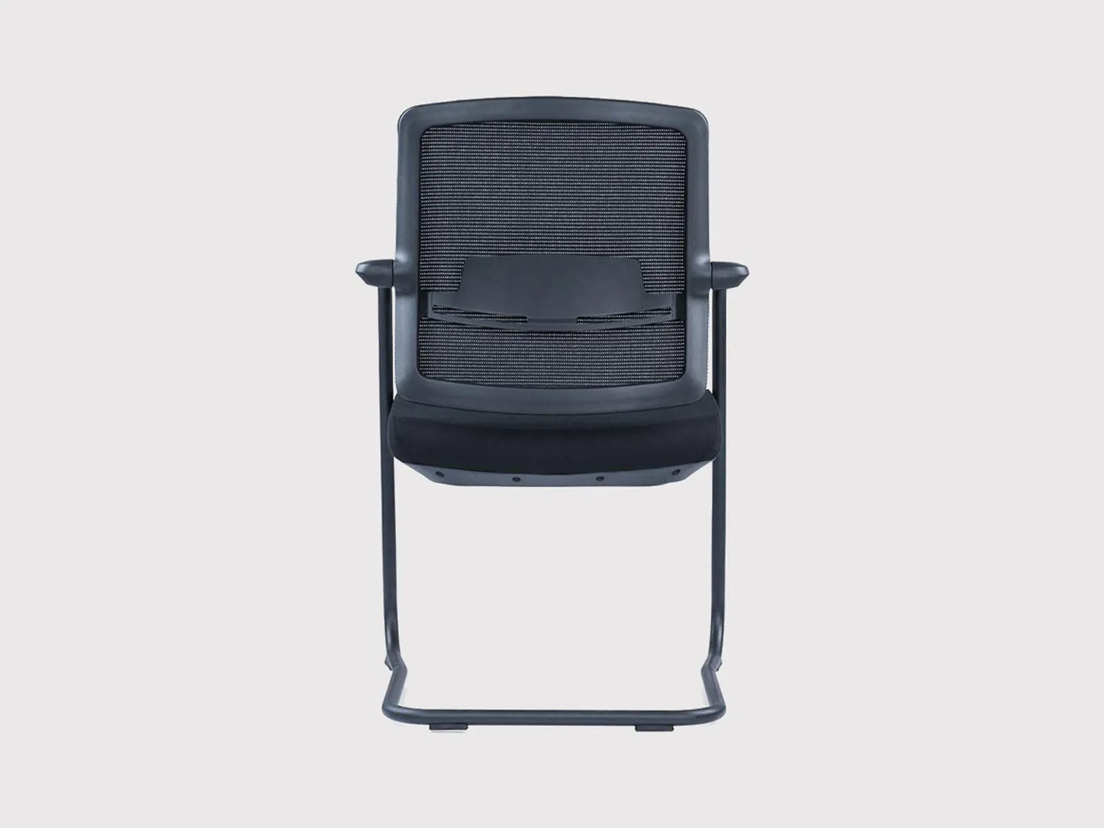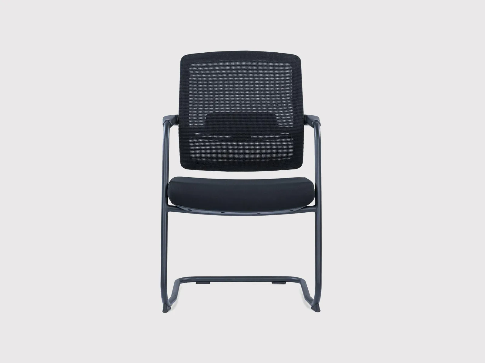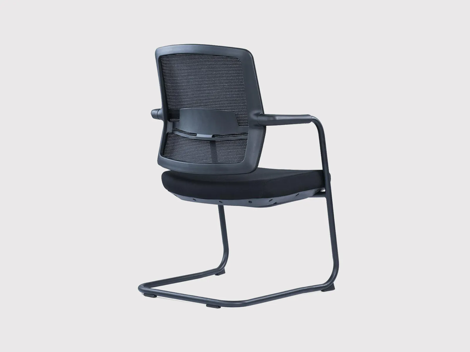 Its seat is padded with high-elastic foam to ensure user comfort, even during extended meetings or training sessions. The chair is supported by a robust black powder-coated steel sled base with bow-shaped legs, which provides strong floor contact and a sleek profile.
