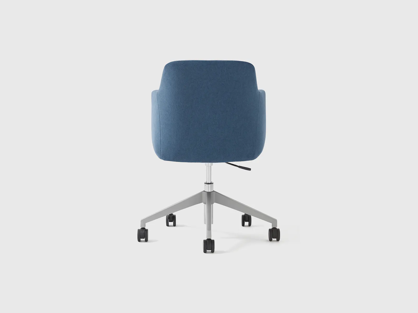 A polished aluminum five-star base enhances both aesthetics and durability, while the 60 mm PU silent castors allow smooth movement without floor scuffs or noise—perfect for shared and quiet office environments. The synchro-tilt mechanism with lift and lock functions offers adjustable reclining tension, providing personalized seating comfort.