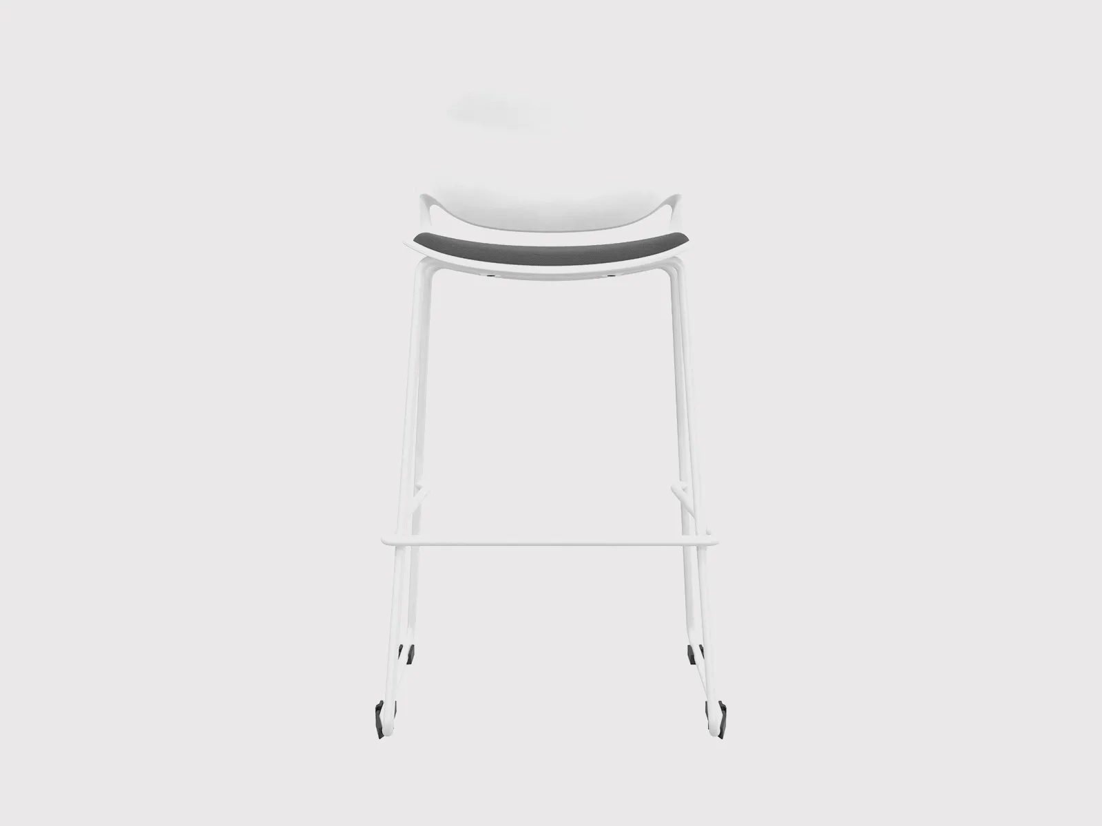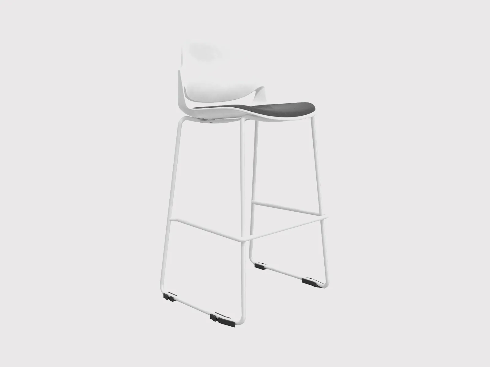 The stool is built on a strong iron frame (Φ16 × T1.0 mm), finished in a clean white powder coating for a contemporary look that blends easily into modern interiors. Compact yet sturdy, it is well-suited for cafés, breakout zones, and collaborative office spaces where both comfort and style are required.