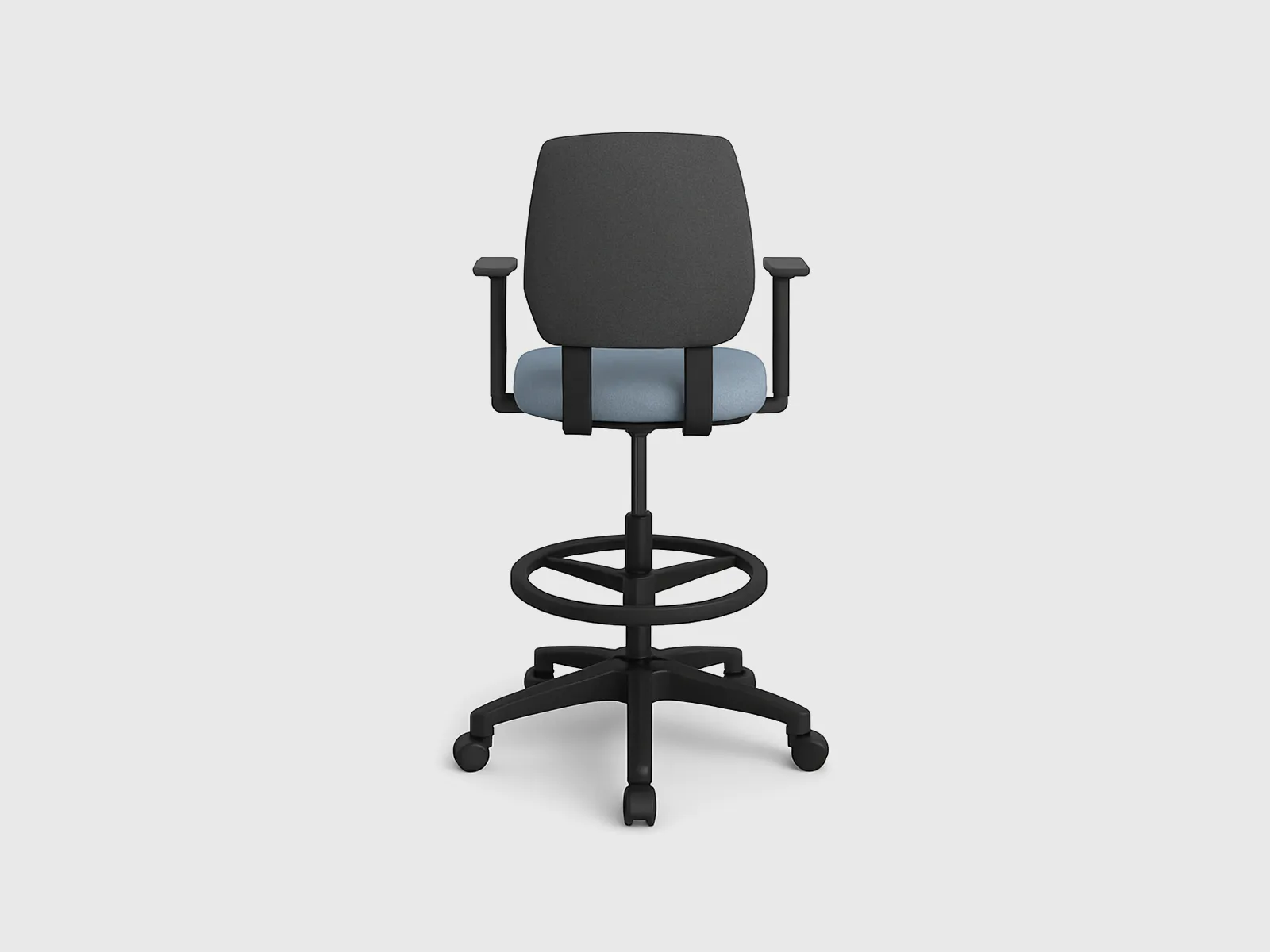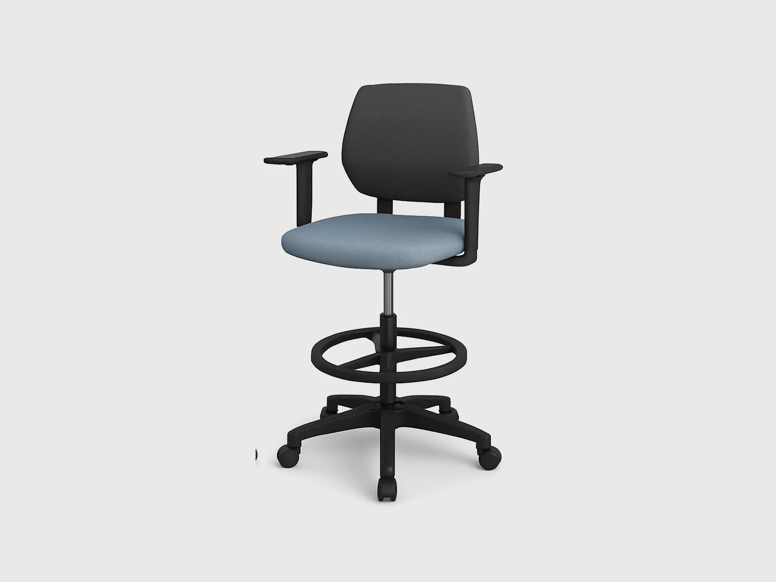 For added convenience, the stool features fixed nylon arms, a smooth swivel function, and durable rolling castors that ensure effortless movement around workspaces. Built to withstand daily use, its robust base offers both stability and mobility, making it suitable for office environments, training rooms, and creative studio setups.
