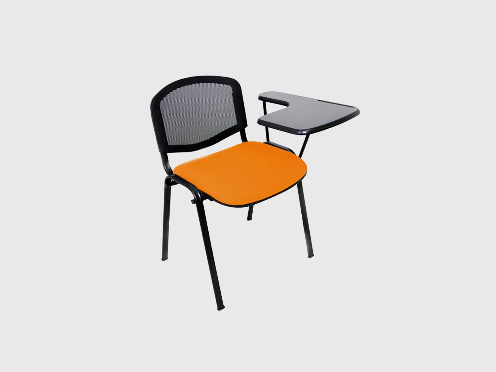 The sturdy black frame ensures long-term durability and structural stability. A highlight feature is the integrated foldable writing tablet — perfect for laptops, notebooks, or tablets — making it ideal for seminar halls, lecture rooms, or professional training centers.
