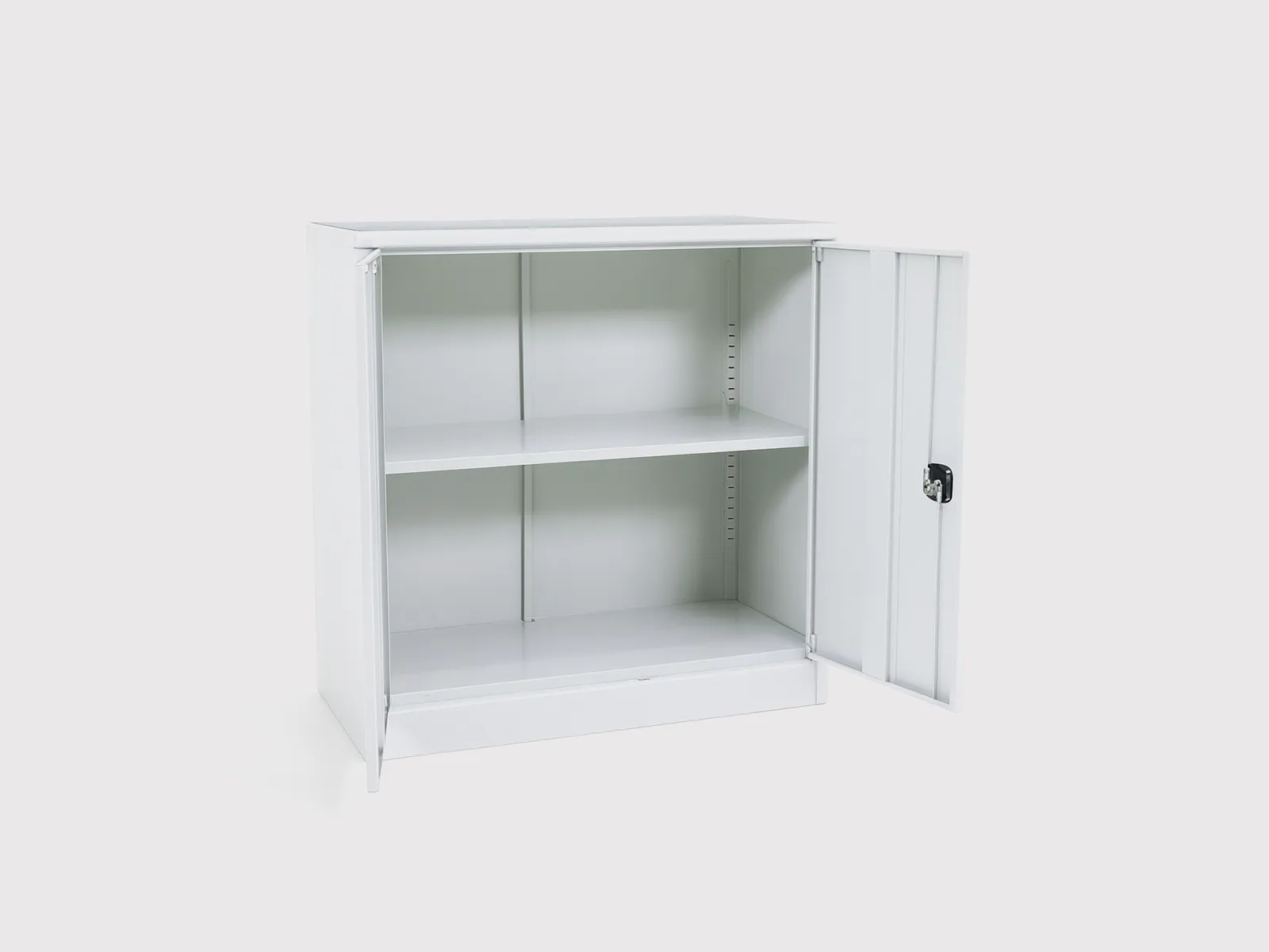 Its single adjustable shelf provides flexibility for organizing files, stationery, and office supplies, making it a practical choice for small- to medium-sized workspaces. The full swing-open doors are fitted with precision hinge-pins that allow for smooth, silent operation, ensuring easy access without disturbing the office environment.