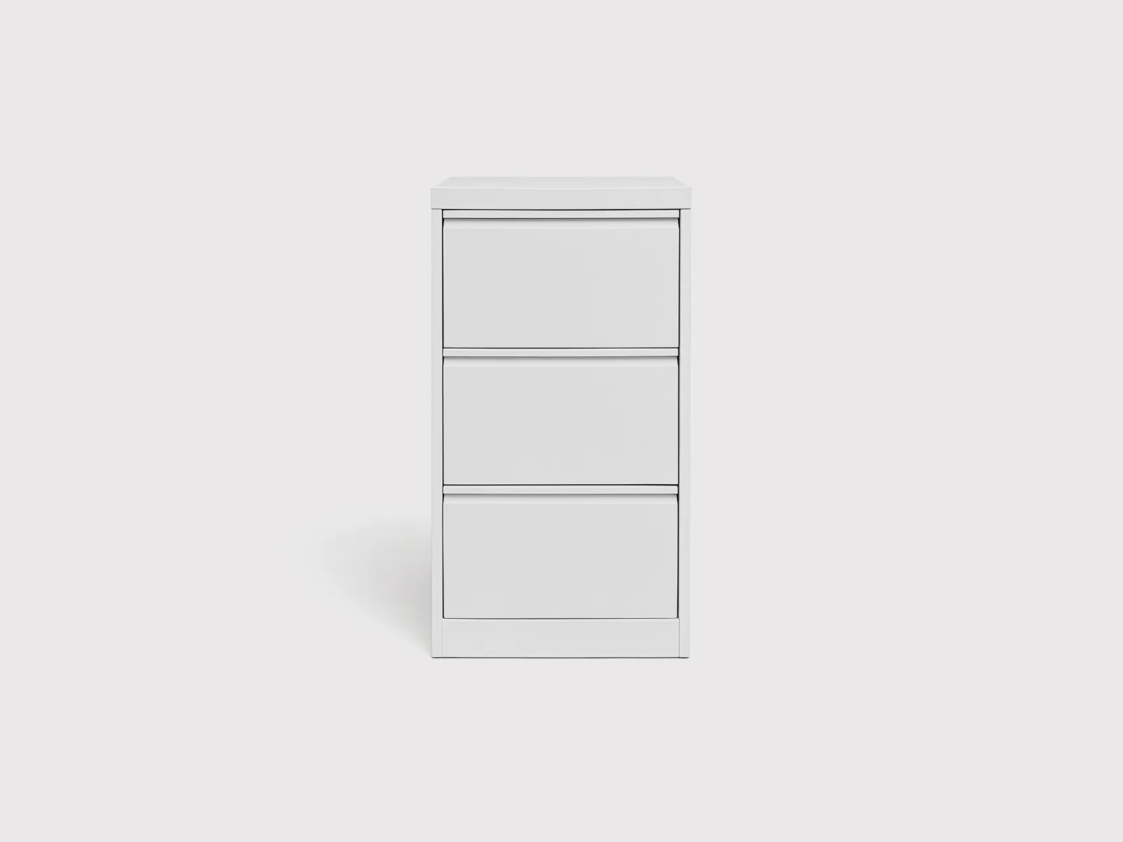 Its three drawers are designed to handle heavy-duty use, with a load capacity of up to 40 kg each—ideal for storing files, folders, and essential office documents. Safety is prioritized through the built-in anti-tilt interlock mechanism, which prevents multiple drawers from opening simultaneously, reducing the risk of tipping. For added security, the cabinet features a central locking system, allowing all drawers to be locked with a single key.