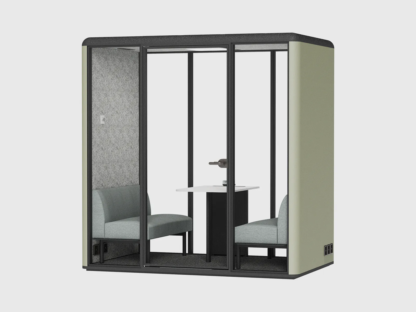 The MOB Silenzio Booth – TEAM is a versatile acoustic booth designed to bring small teams together in a private, distraction-free environment. Ideal for meetings, brainstorming sessions, and confidential discussions, it comfortably accommodates up to three people while ensuring a professional and quiet atmosphere.