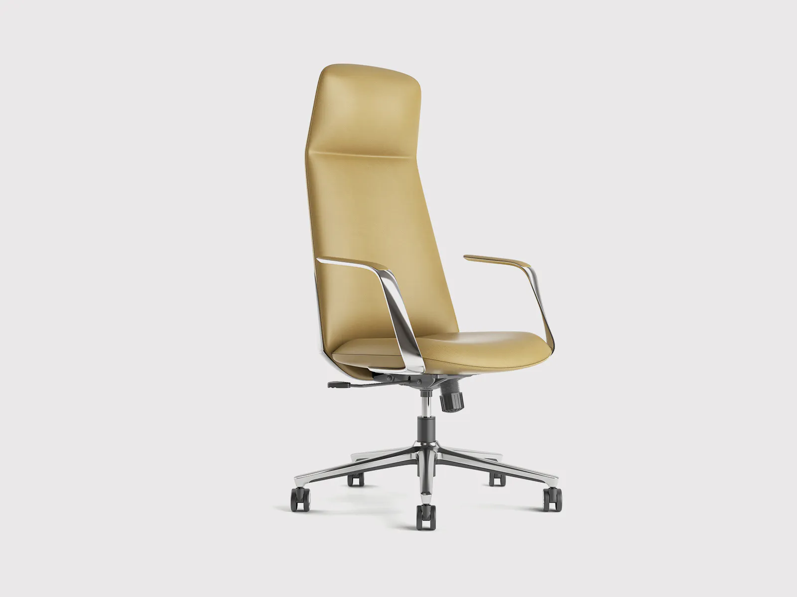 The full molded foam seat and backrest are built over a durable 14mm wood board to ensure lasting comfort and structural integrity. Polished aluminum armrests add a modern finish while providing sturdy arm support during long hours of work or meetings.