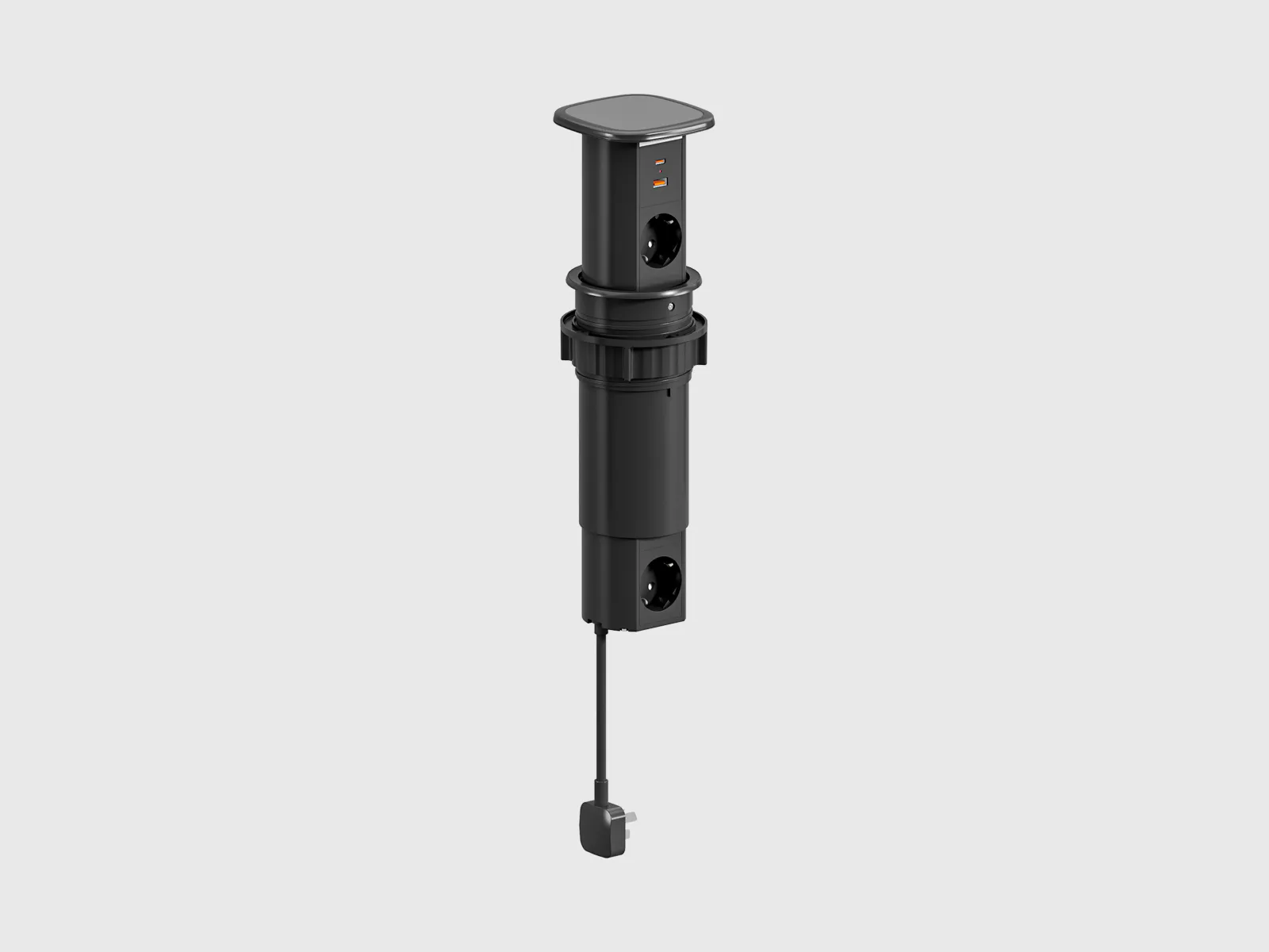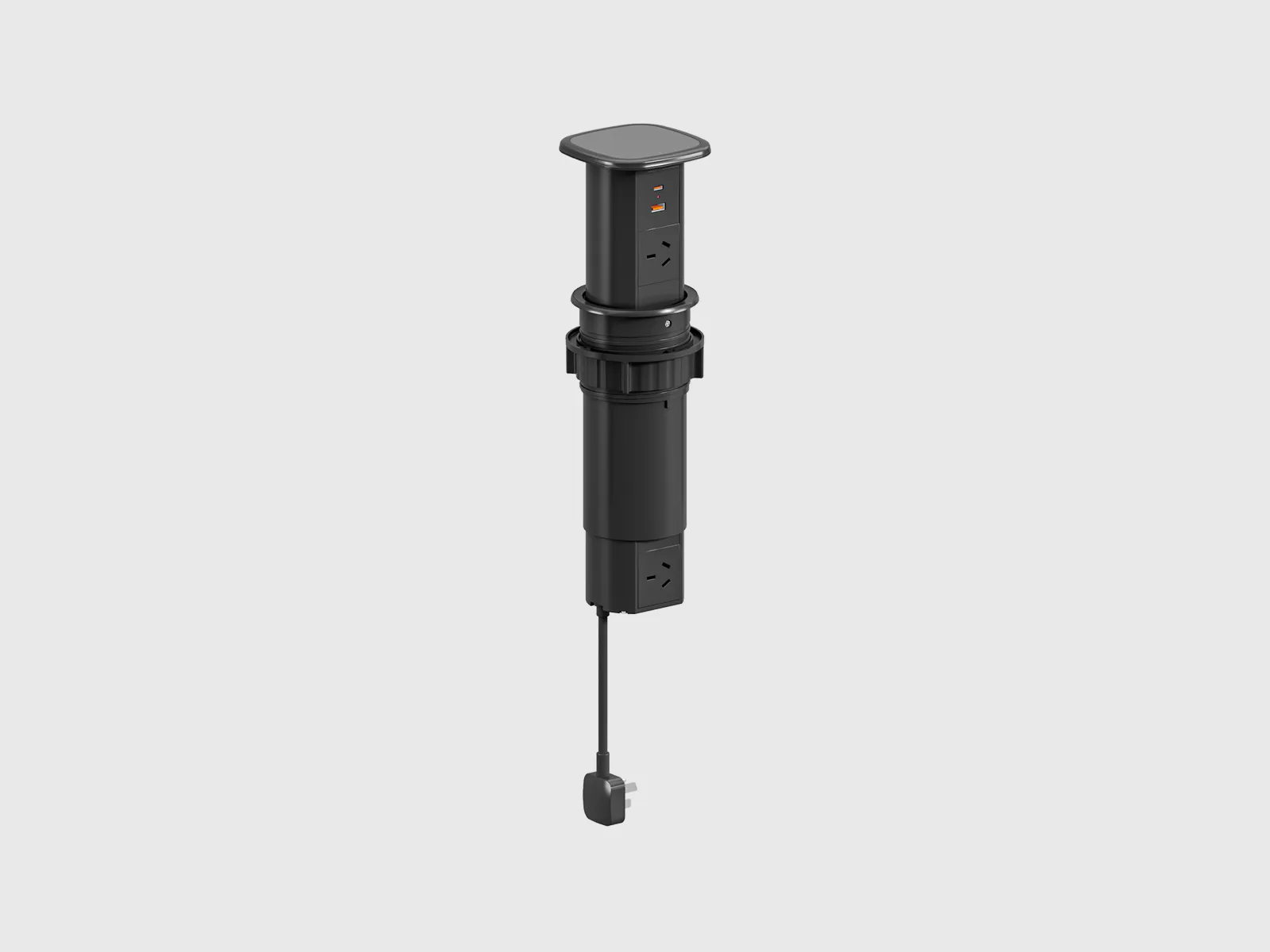 The MOB PC06 Pop-Up Power Outlet is engineered for modern offices, collaborative spaces, and executive desks where convenience and design go hand in hand. With a smooth manual push-to-open mechanism, the module provides quick access to power outlets and USB charging ports whenever needed. Once finished, it retracts seamlessly into the desk, leaving surfaces clutter-free and professional.